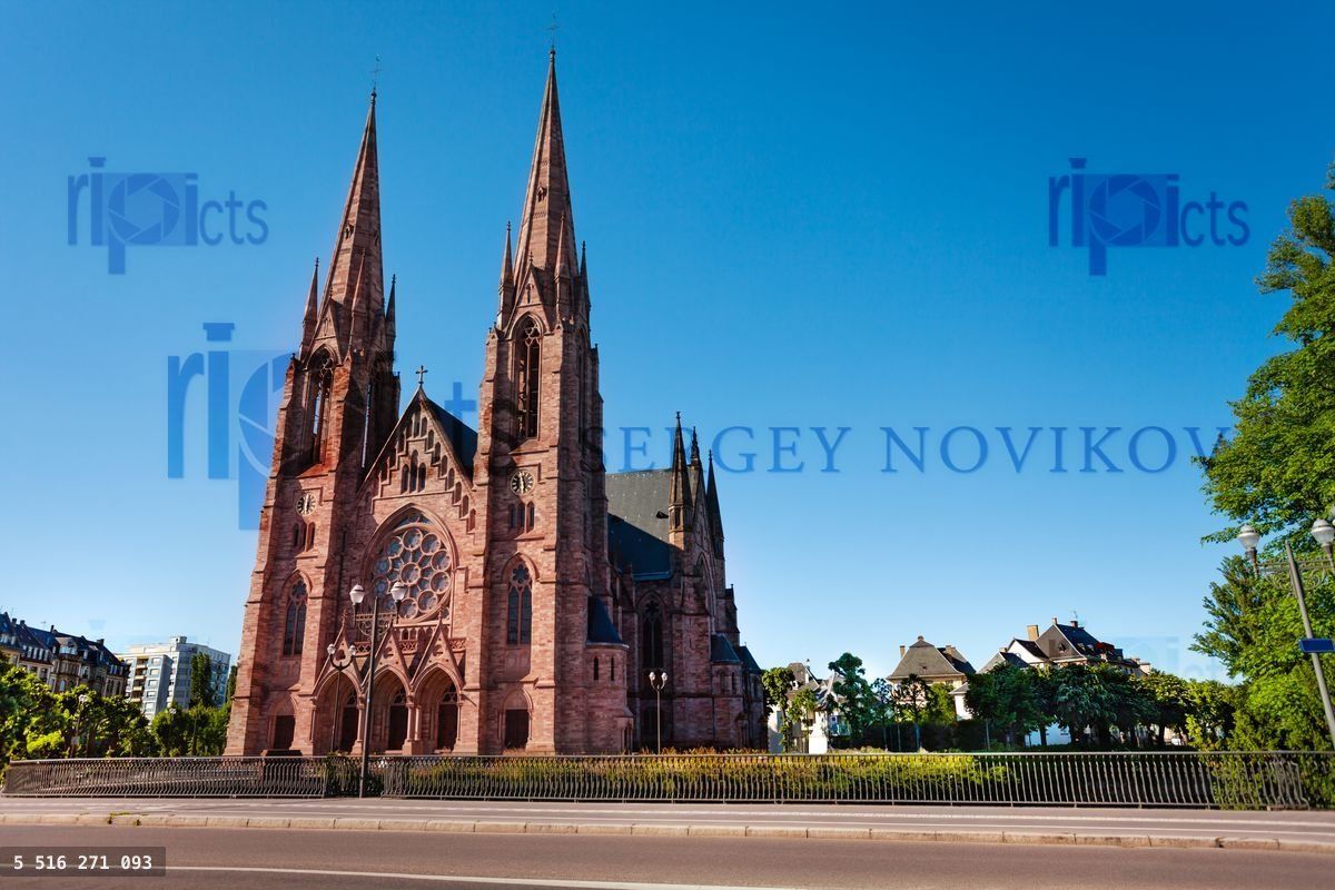Saint Paul Church viewed from the Pont d'Auvergne in Strasbourg, FranceLoading purchase options...