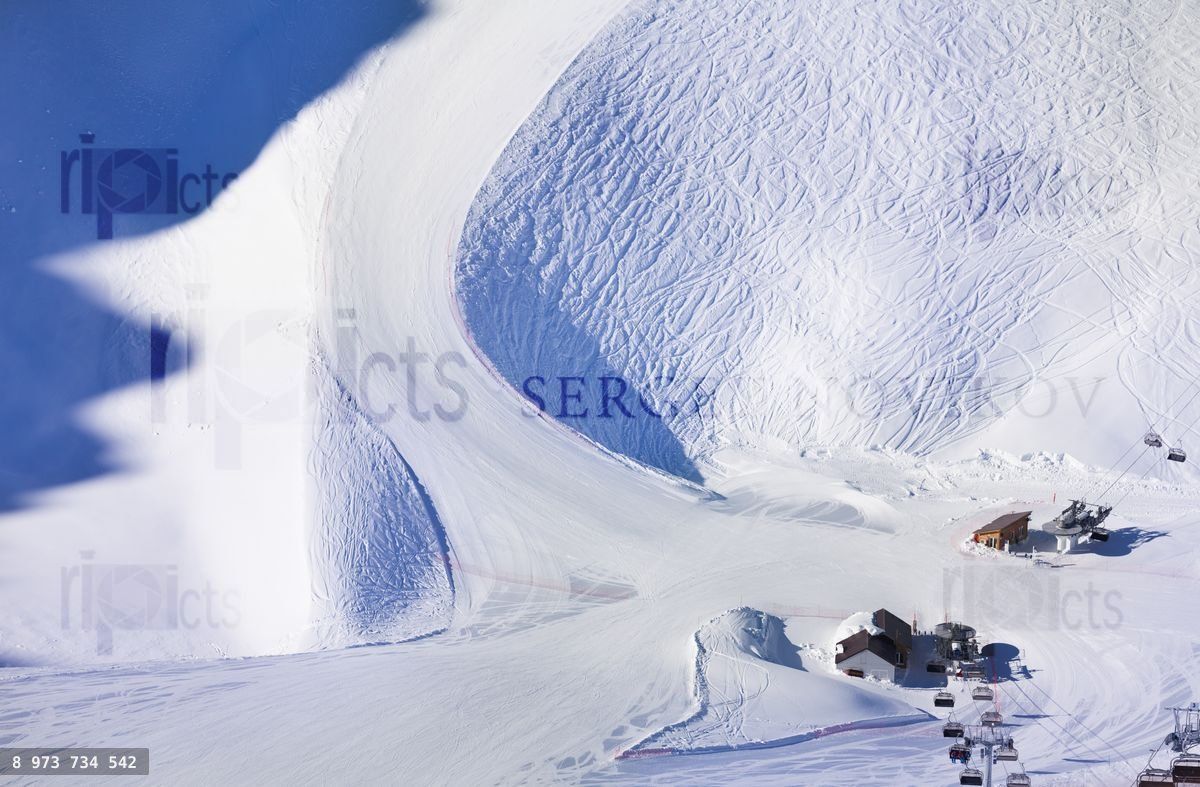Beautiful winter landscape of Caucasus snow slope during daytime in Sochi ski resort Krasnaya polyanaLoading purchase options...