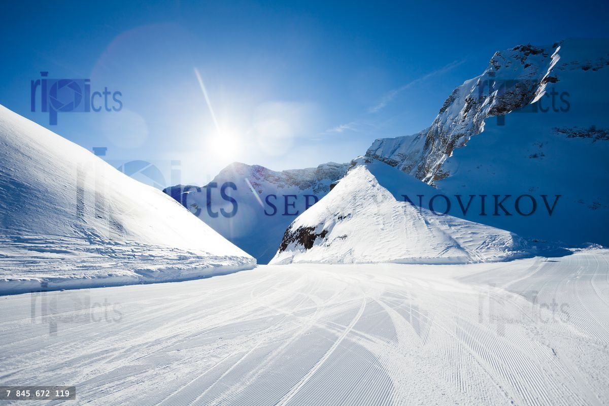 Beautiful winter ski-track near Caucasus mountains during daytime in Sochi ski resort Krasnaya polyanaLoading purchase options...