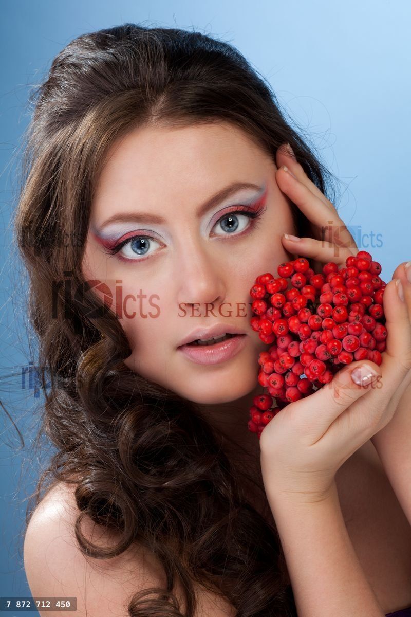 Portrait of a beautiful woman with rowan berry looking at cameraLoading purchase options...