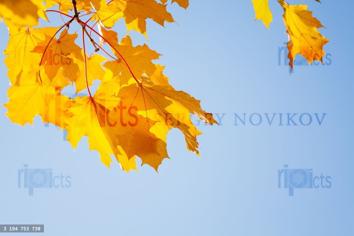 Beautiful yellow maple trees close-up over blue skyLoading purchase options...