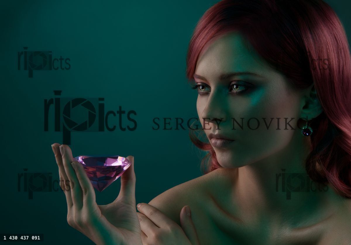 Beauty portrait of woman with big pink diamondLoading purchase options...