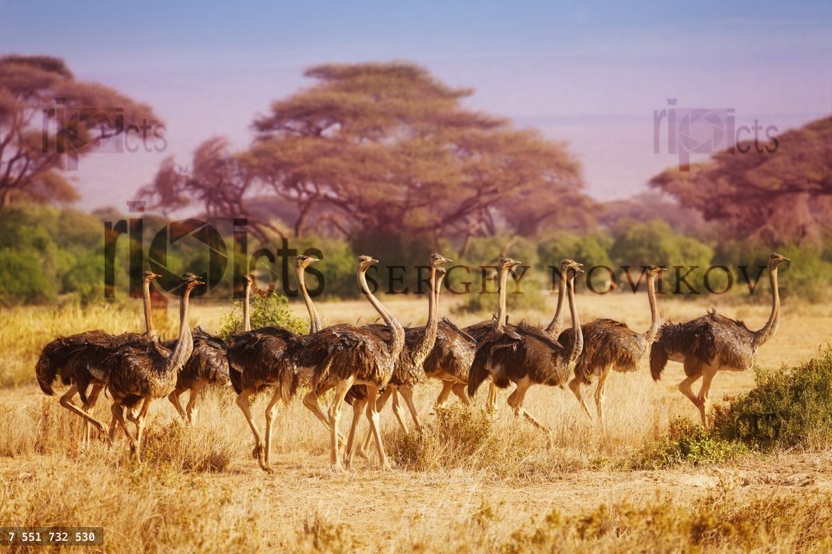 Big herd of female ostriches running at Kenyan savannah, AfricaLoading purchase options...