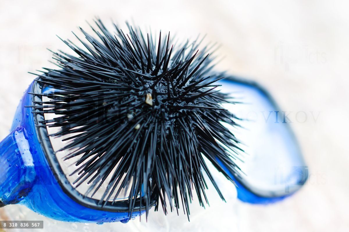 spikedwetbarbmaskskydivedivingoceansandscubasportsummertourismunderwatervacationsadriaticanimalbeachhazardmarinerockseasharpshellsmallstonethornurchinwater