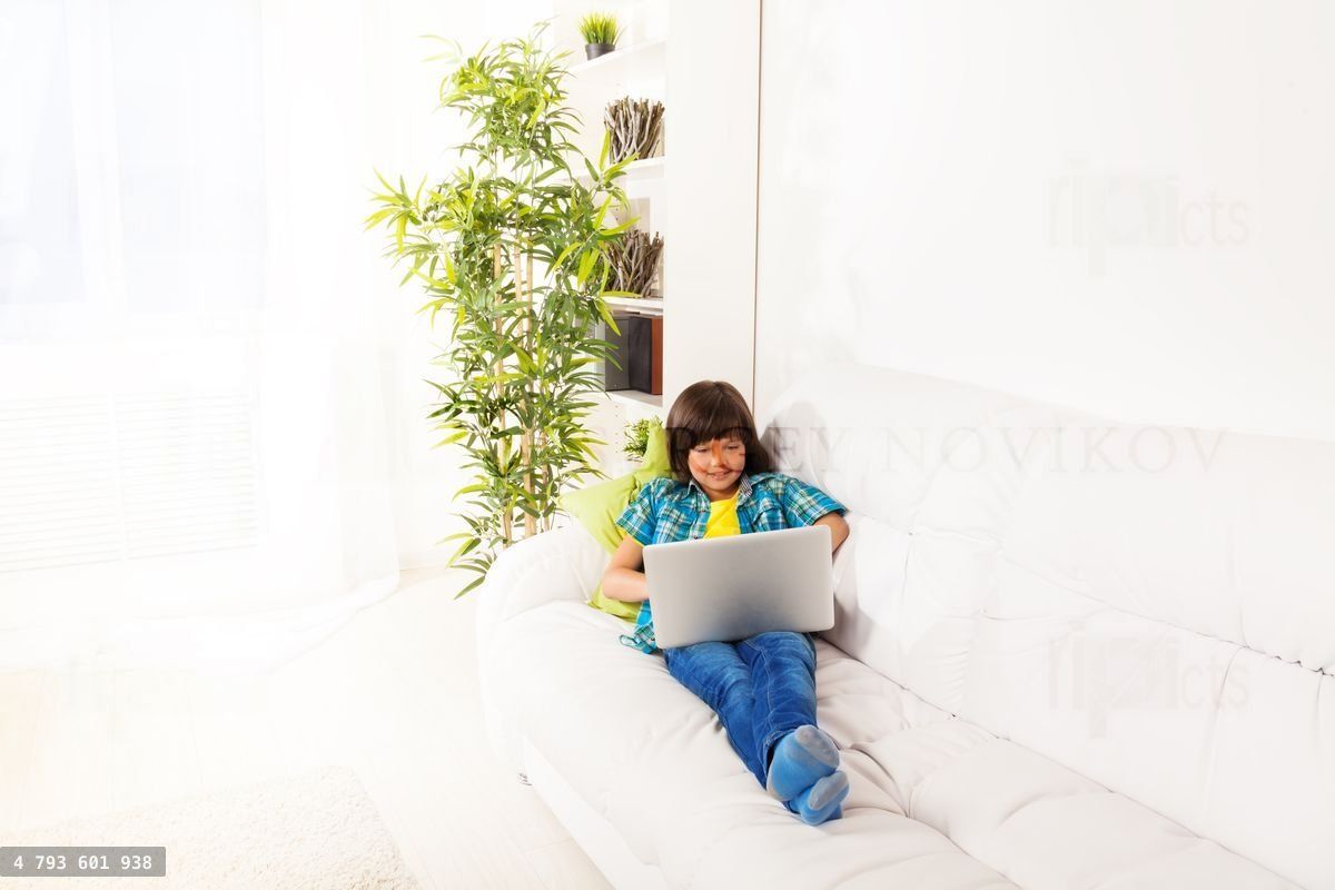 Boy with laptop on the couch