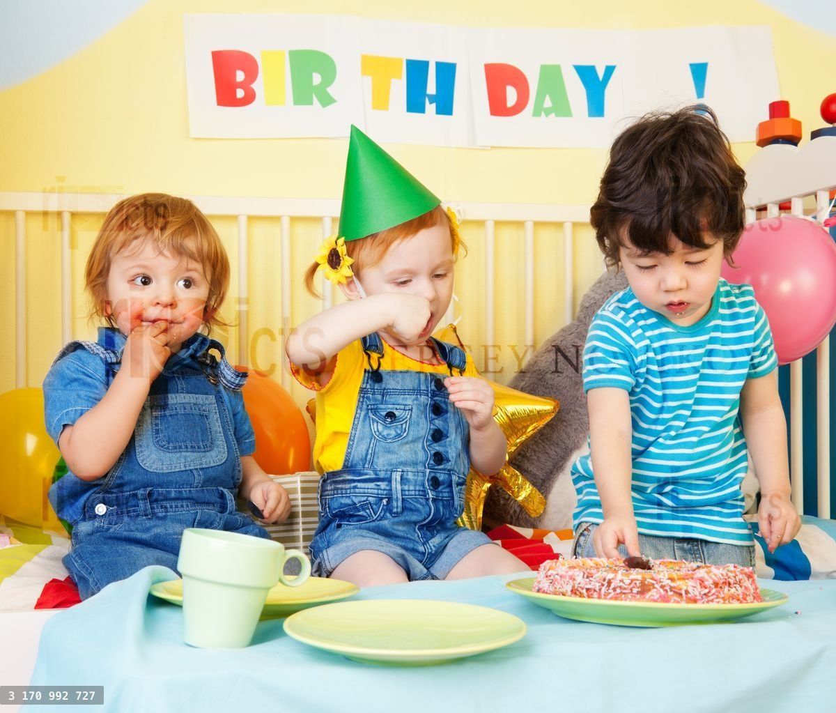 Boys and girl at the birthday party eating cakeLoading purchase options...