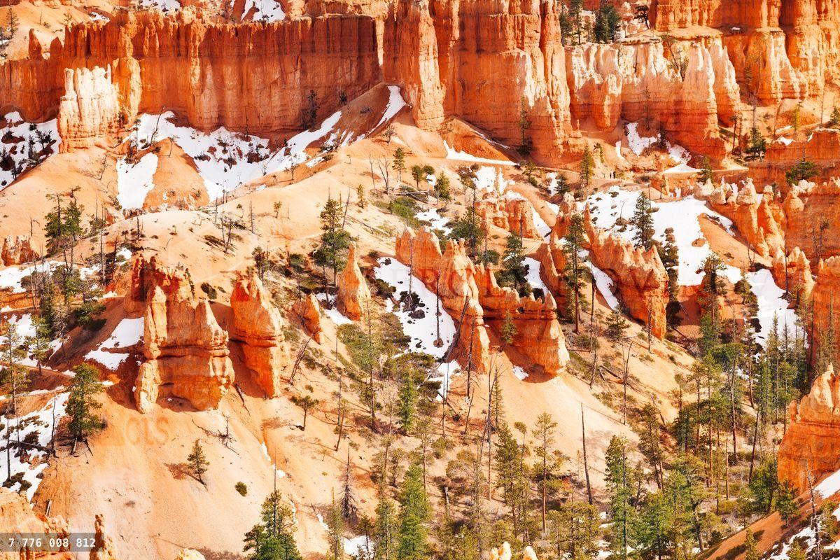 Sandstone mountains of Bryce Canyon National Park with remains of snow, UtahLoading purchase options...