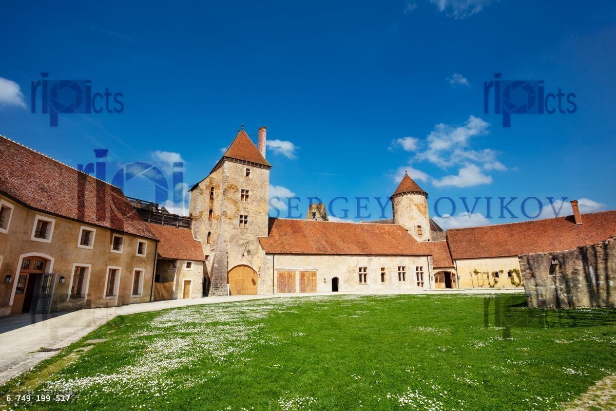 Buildings and towers of Blandy-les-Tours castle on sunny day over blue sky, France EuropeLoading purchase options...