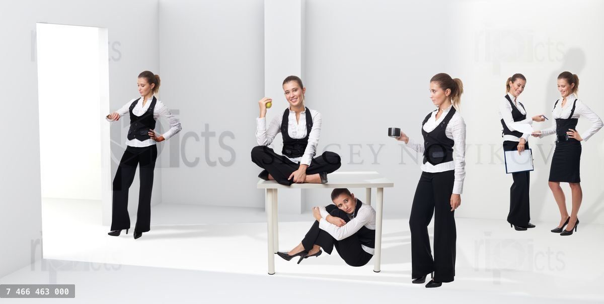 Scenes of a woman in office emphasizing different stages, situation and emotion in her careerLoading purchase options...