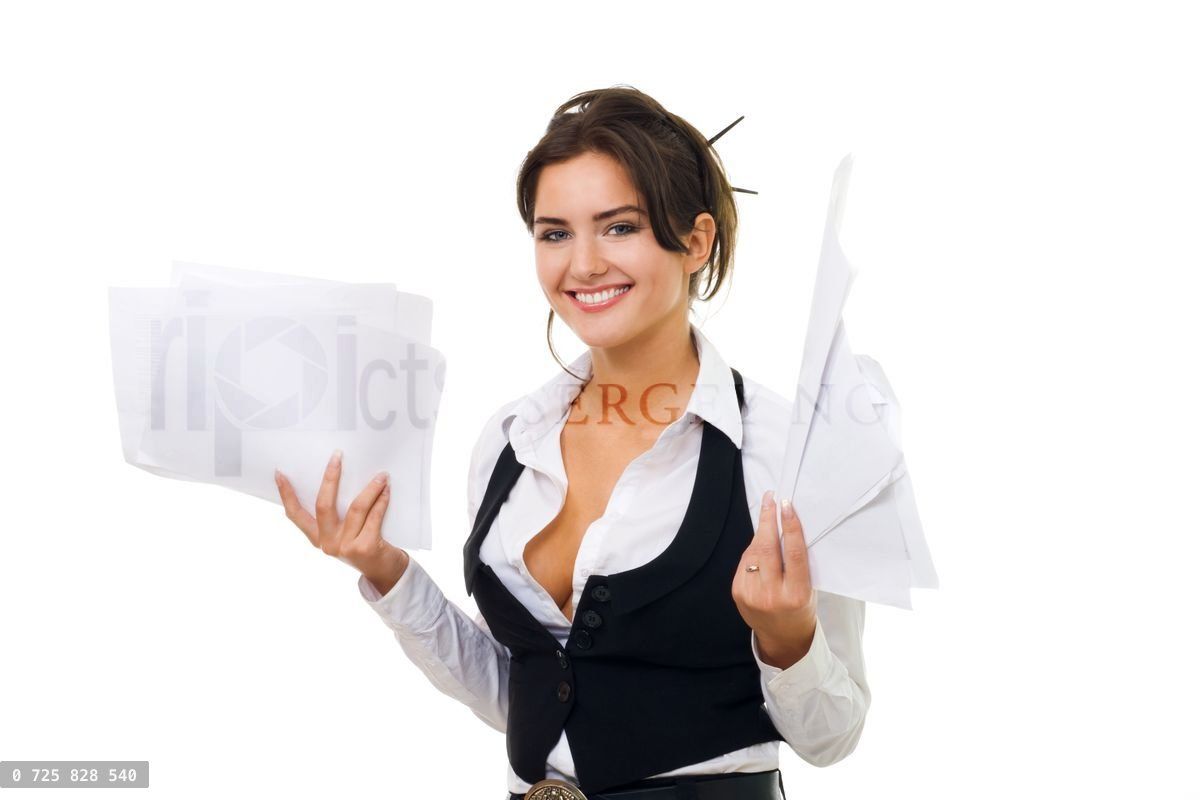 Business woman hold documents with standing, smiling and looking at cameraLoading purchase options...