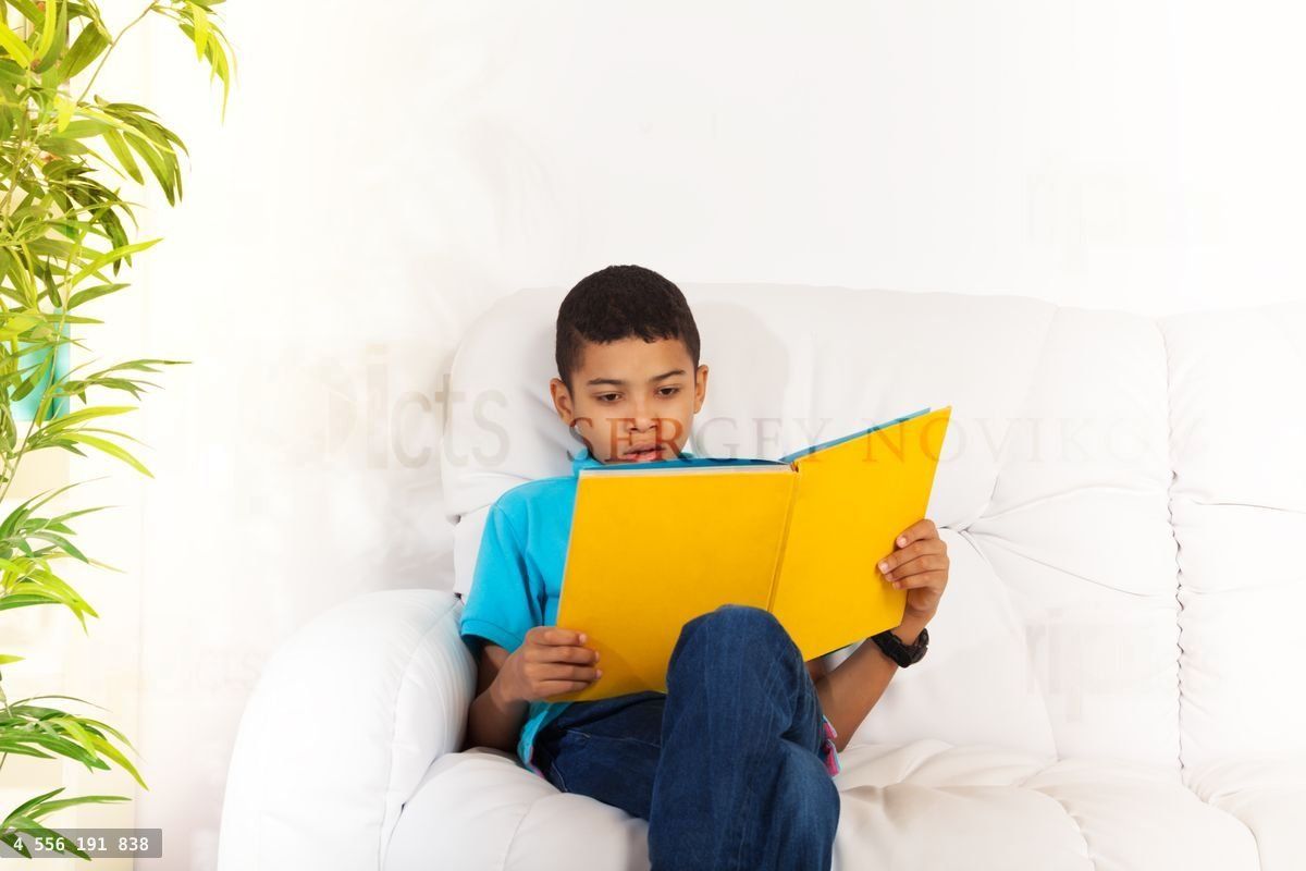 long hairsitchildkidchildrenkidsonesittingsmallcheerfulindoorspeopleplayingpreschoolercuteone personsmilingwhitecasualpersonpreschool10tenblackAfricanshort hairboyboysbookbooksreadreadingsofalifestyleeducationliteraturestudentstudyknowledgelearnstudyingintelligencecleverintelligentdomesticroomhomeholdcouchserious