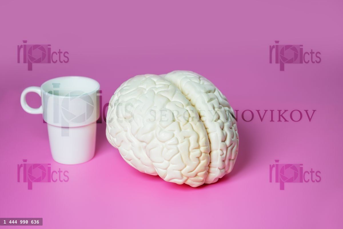 Photo of coffee cup and human brain aside over pink background - concept with caffeine effectLoading purchase options...