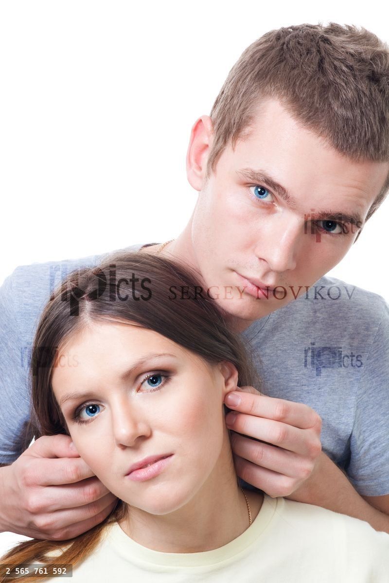 Portrait of a young calm couple together, isolated on whiteLoading purchase options...