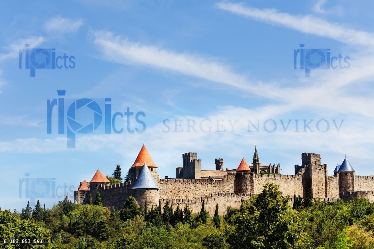 EuropeEuropeanSouthFranceFrenchAudeCarcassonneCite de CarcassonneoldmedievalcityancienthistoricsymbolstonearchitecturebuildinghousecastletowermonumentexteriorroofingwallfortressfortificationfortifiedhillhilltopattractionsightsiteUNESCOheritagelandmarkdestinationtraveltravelingtriptouristtourismvacationholidaylandscapenatureforestsunnydaybluesky