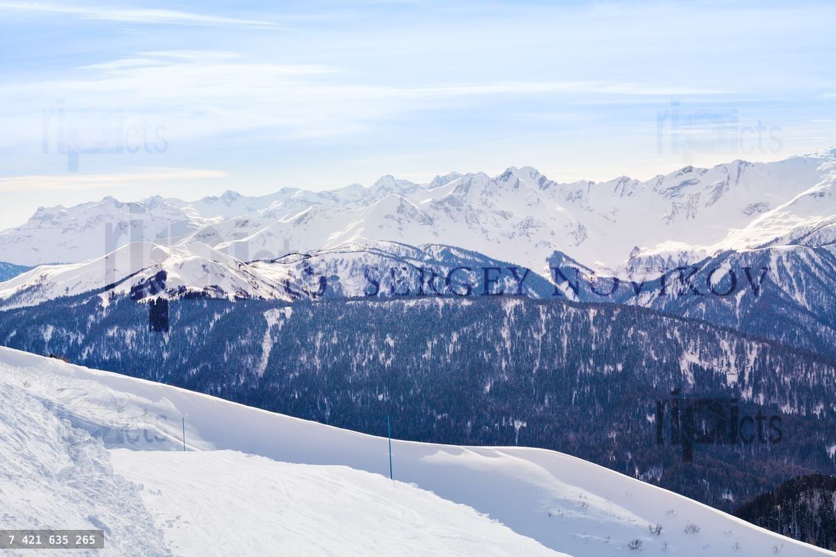 Caucasus mountains during daytime in winter, Sochi ski resort Krasnaya polyana, RussiaLoading purchase options...