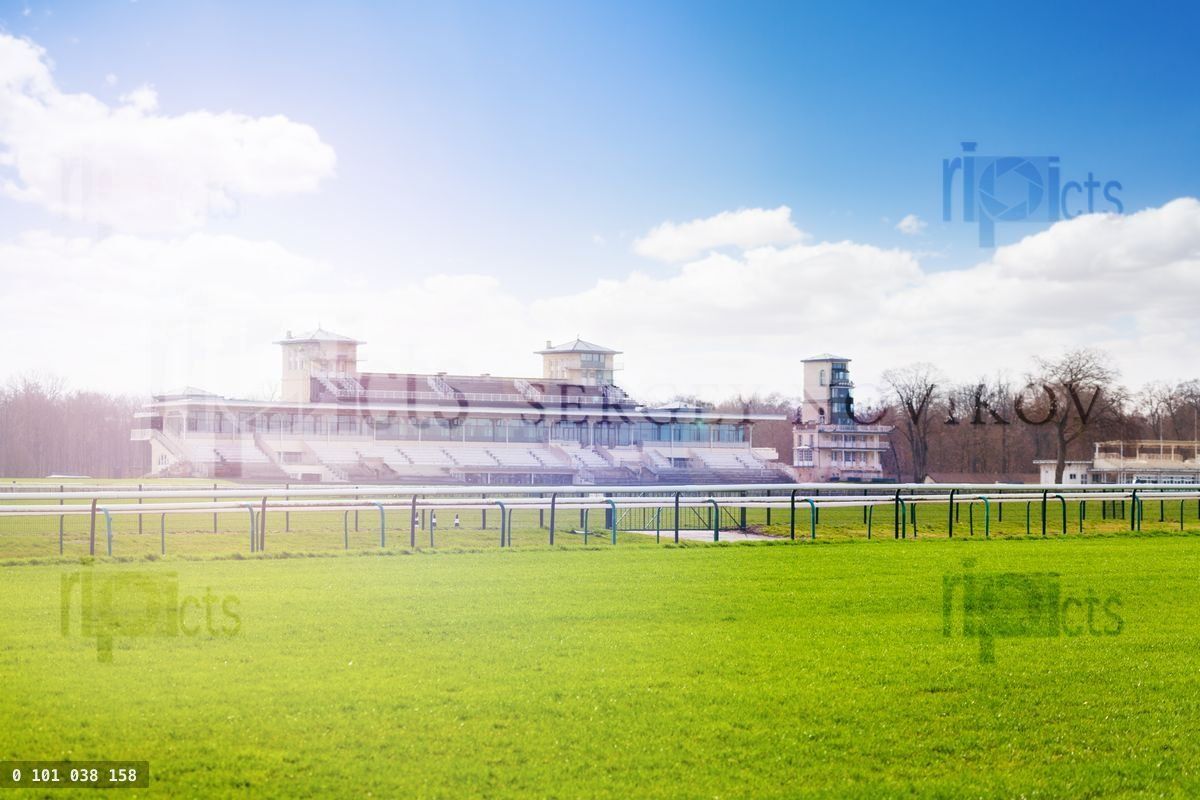 Chantilly racecourse with stands at sunny day