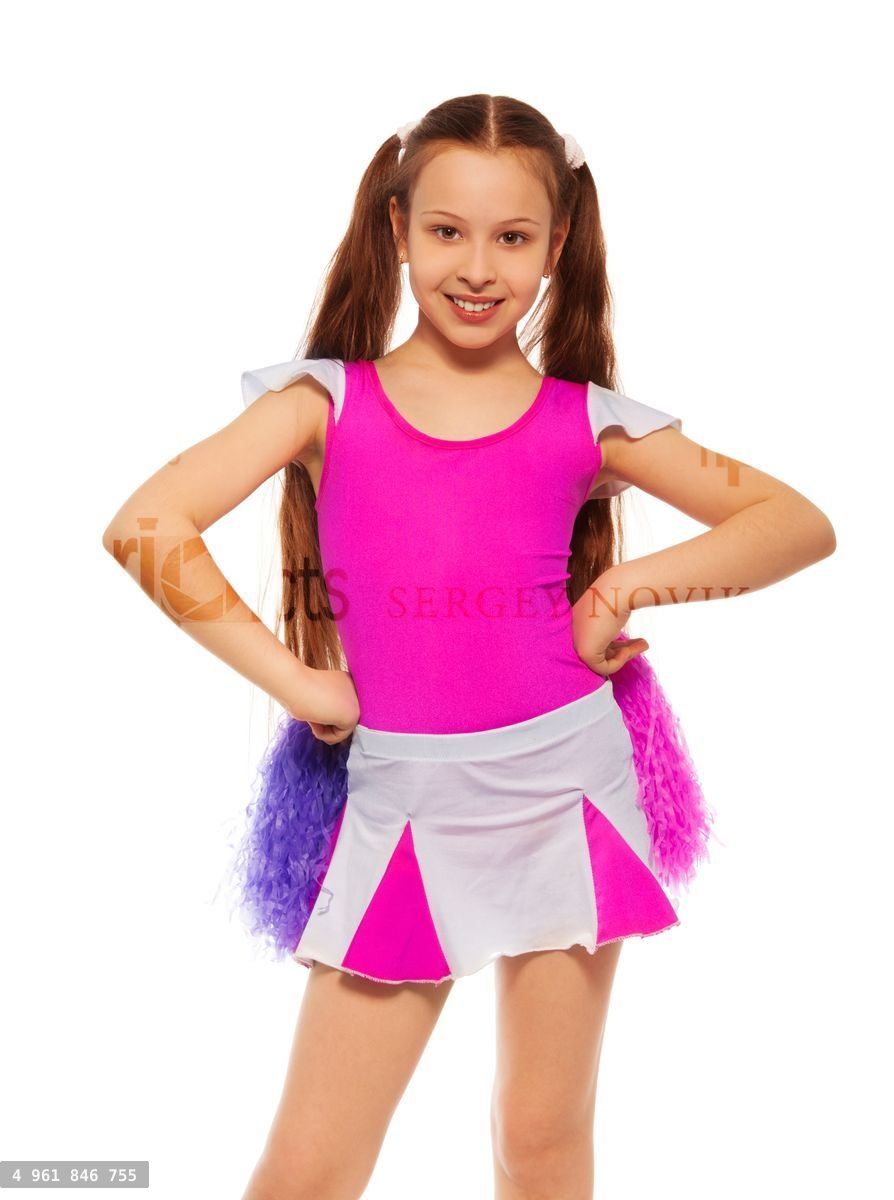 Beautiful cheerleader girl with long dark hair on whiteLoading purchase options...