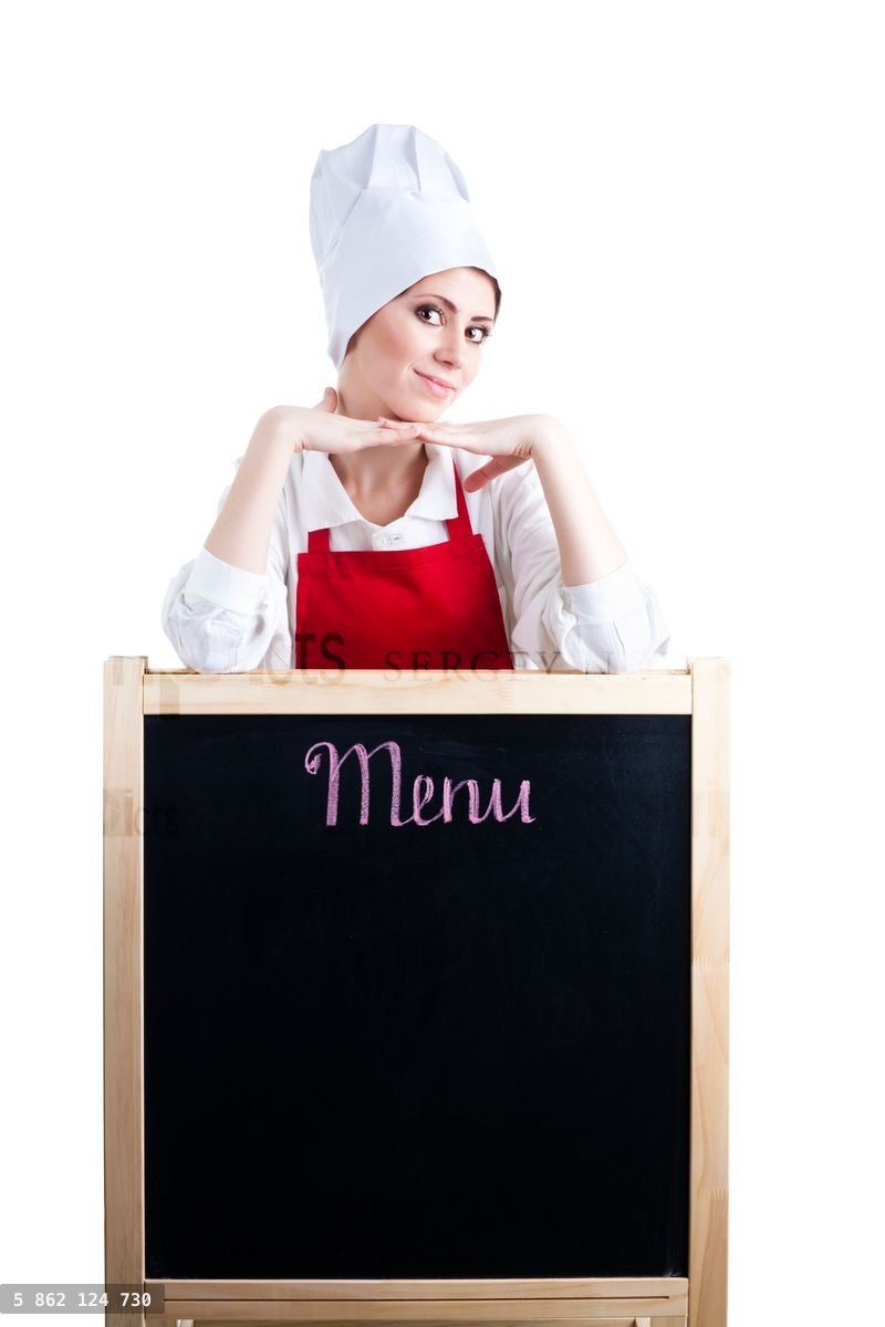 isolated on whiteWhite hatred apronmenuboardblackboardwomanportraitattractivebeautifuladultfemalepersononejoyhappygrinpositivethinkdreamYoungcheerfulcookingdeliciousdinnerfoodpreparesaladlunchcaucasianchefcuisineculinarygourmethatitalianoccupationprofessionprofessionalrestaurantuniformwallpaperwhite