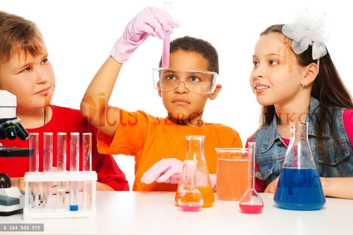 Boys and girls learning chemistry and conduct experimentsLoading purchase options...
