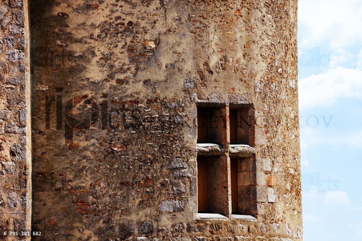 Close-up of a window in old medieval stronghold castle tower of Blandy-les-Tours, FranceLoading purchase options...
