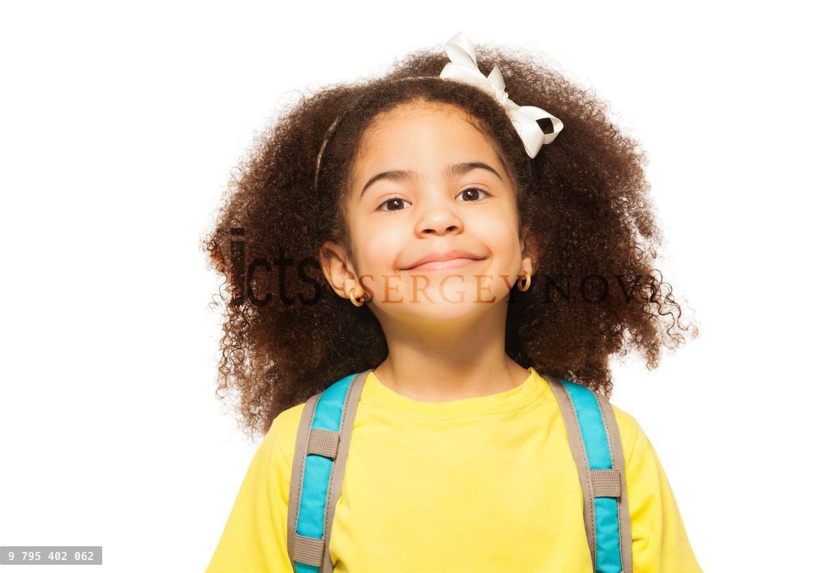 Africangirloneisolatedsmallwhitebackgroundbagsmilepositivecheerfulcurlyhairaccessoryyellowhappyyoungbeautifulpersonblackkidcutechildlittlefemaleafrochildhoodhappinessfaceprettysweetadorablehairstylejoystudiostandstandingclose-upportraitbowsmilingcarryviewrucksackwearchildrenkidslifestylepreschoolbackpack
