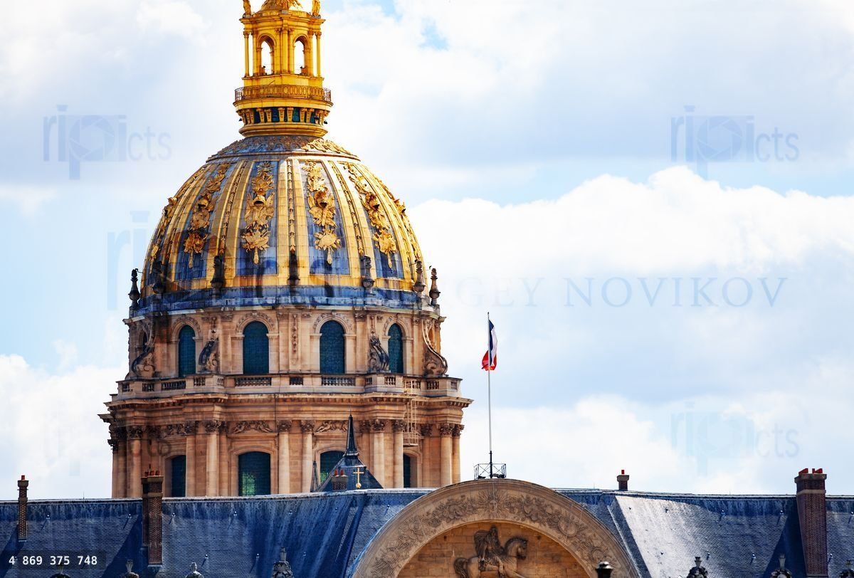 Closeup of Invalides building and dome Paris during summer, FranceLoading purchase options...