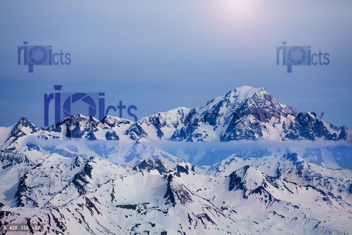 Scenic view of clouds running over snowy peaks of Alpine ridge of Mont BlancLoading purchase options...