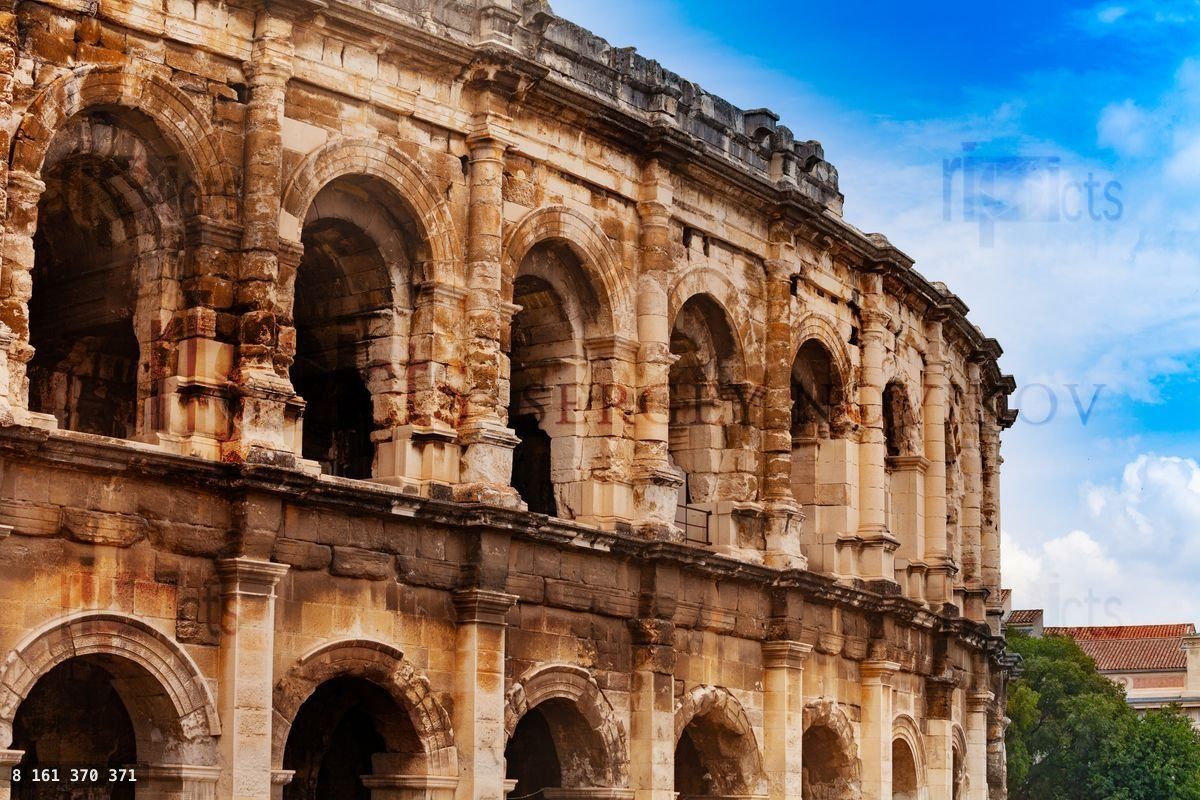 Coliseum antique amphitheater in Nimes, city in southern France, capital of the Gard departmentLoading purchase options...