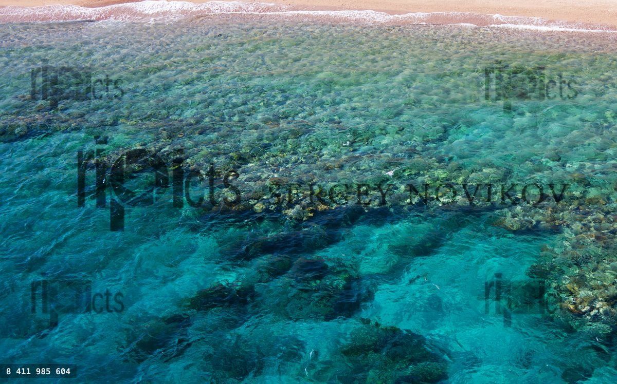Corals in water on coral beach from bird viewLoading purchase options...