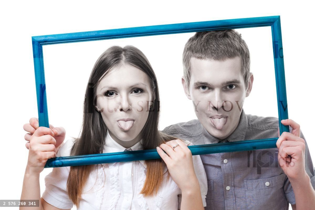 Couple look from frame with stick out tongue