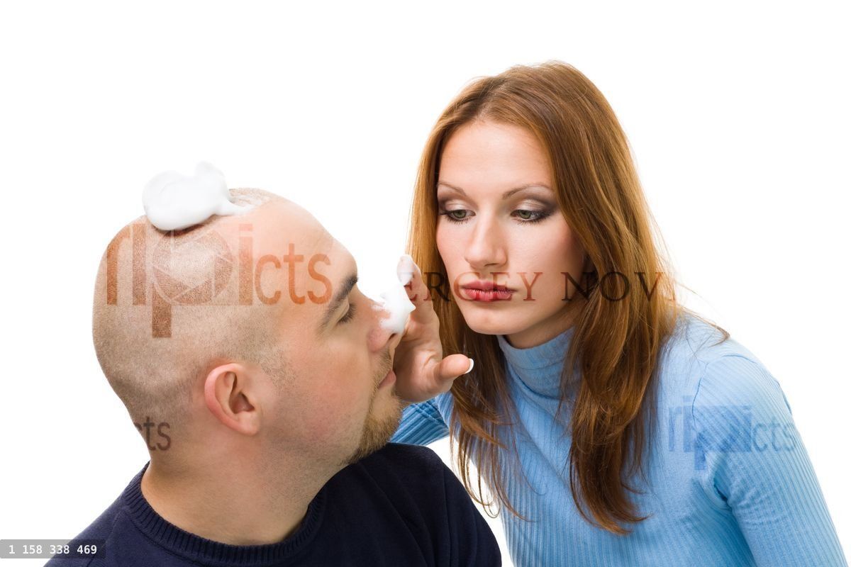 bluecasualstarelookatcameraboldbeardsmilegrinexpressionfeelingfrontmaturemasculinevirilesurprisedamazedshaveadultbathcleancreamhappyhealthisolatedmalemenmorningwetwhiteyounghairstylebathroomcarecaucasiancouplefoamfunhandsomehygienemanplayingromanticshavingwoman