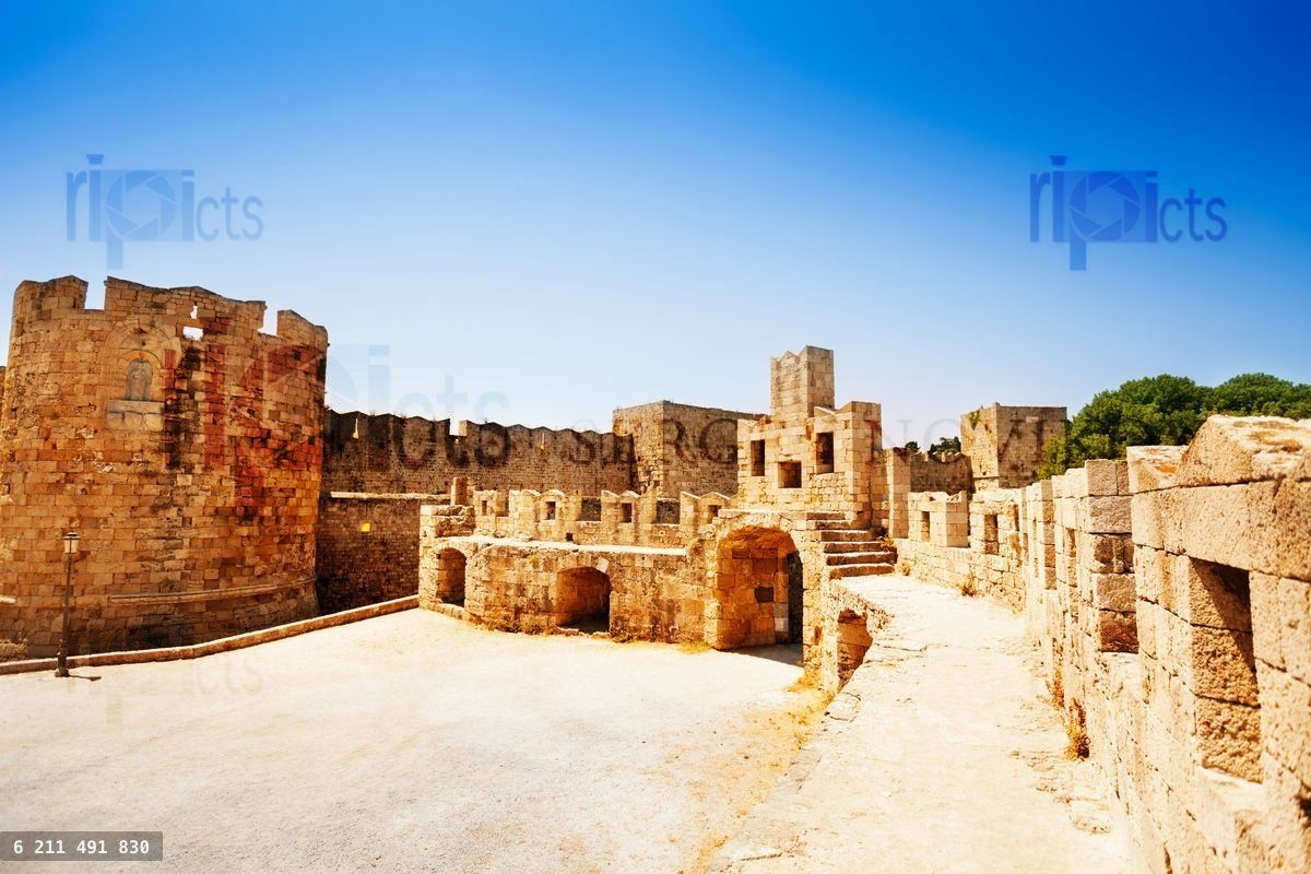 A court of Castello Palace fenced in defensive towers, Rhodes Island, GreeceLoading purchase options...