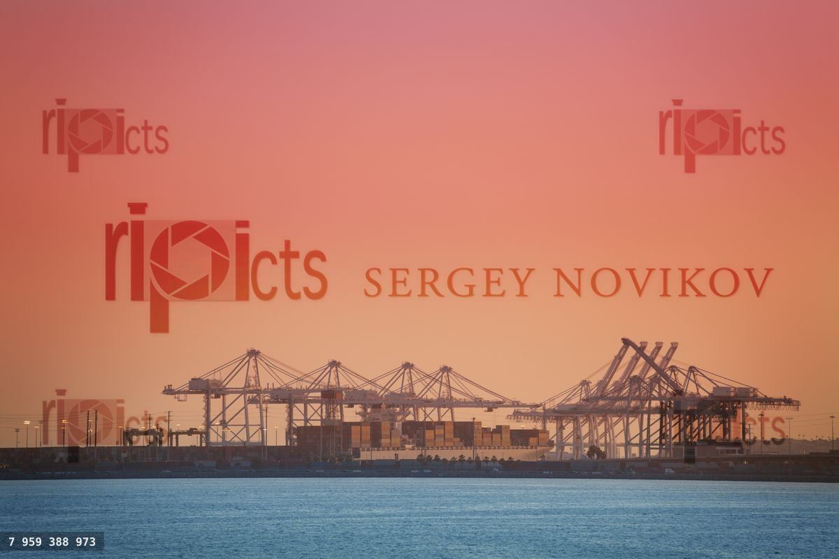 UnitedStatesAmericaAmericanUSALosAngelesLACaliforniabayLongBeachoceanPacificharborwater-frontportquaypierjettylandingplacestagequaysidewharfdockleveeareazonemaritimefreightcargoboatshipvesselbargecontainersunseteveningshippingterminalbusinesscommercedeliveryshipmentbulkcarrierfreighterlogisticsindustrial