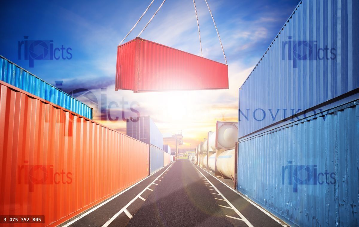 Crane put container in the sea port view over sunset transportation conceptLoading purchase options...