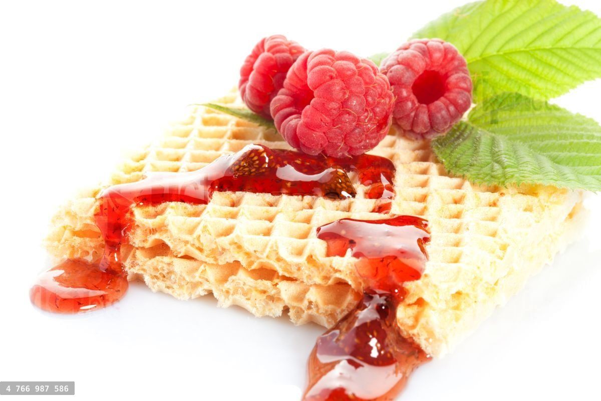 crispy waffles with raspberry jam isolated on whiteLoading purchase options...
