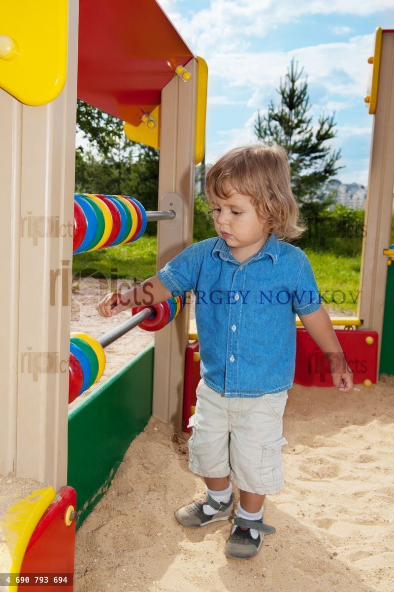 blond toddler playing with counting-frame on the playgroundLoading purchase options...