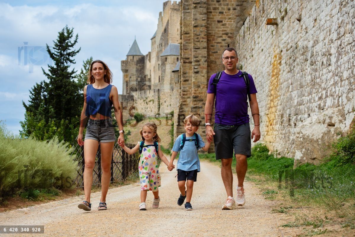 Family spend vacation in France enjoy sightseeing at Carcassonne