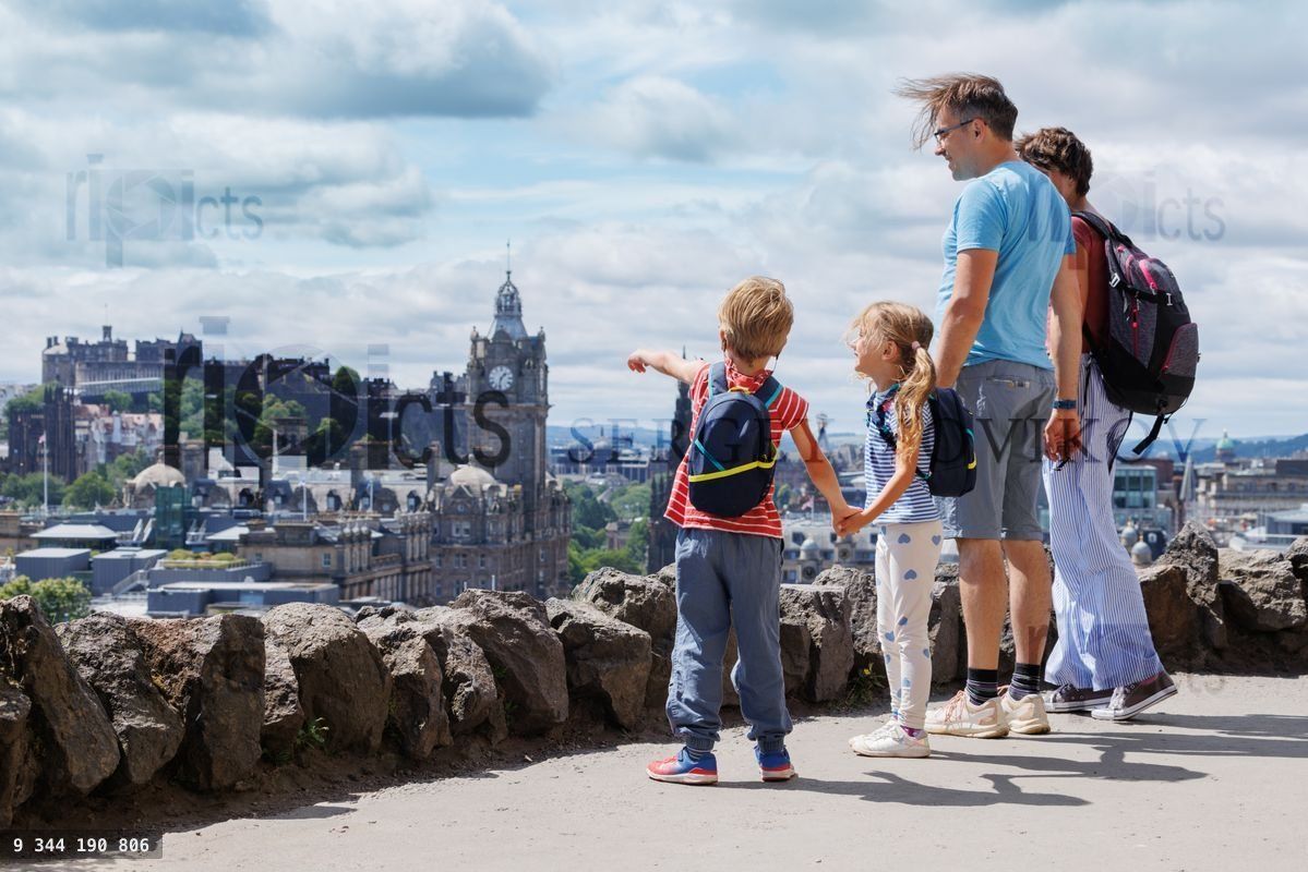 Family with kids enjoys scenic city of Edinburgh skyline view