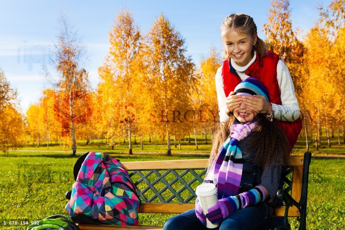 11girlyounglong hairhappyCaucasiansmilingbeautifulstudentchildrenAutumncasualwarmparkchildkidkidsfalloutdoorlifestyleOctobertwo2friendsittogetherhandsurprisepalmfacecuteeyesclosedbehindguesstouchingplayinghandshideshidepalmssurprisedgirlfriendboyfriendcheerfulromancebackpackrucksackbag