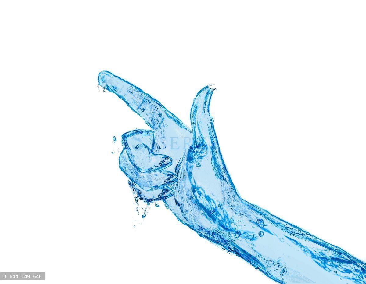 Hand pointing with finger made of water isolated on white mixed media illustration conceptLoading purchase options...