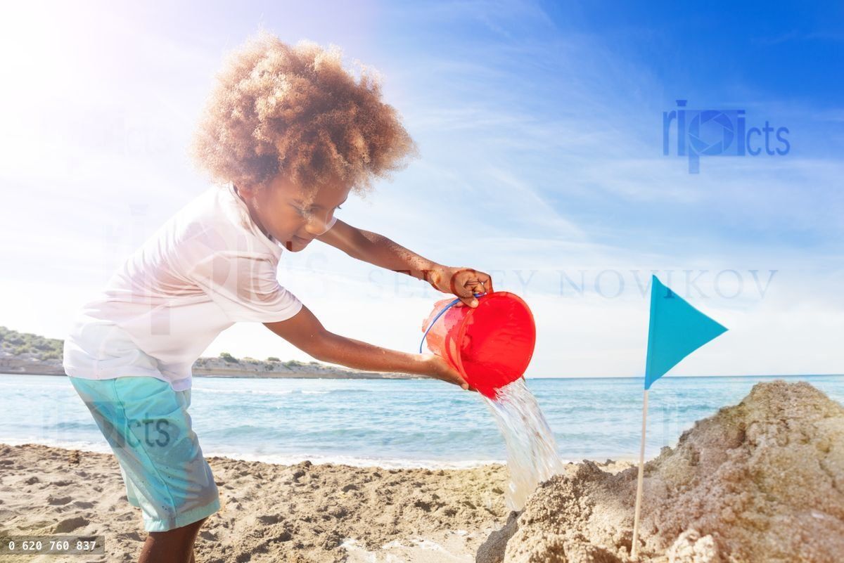 Africanboykidkidschildchildhoodchildrenyoungyouthsmilesmilinghappyenjoyjoyfunplaylifestyleactivitysummertimesummersunsunnydaypourwaterseasideseaoceanbeachcoastshoresandcastlesandcastleflagsculpturebuildcreatetoypailbucketleisurevacationholidayweekendtravellingoutdooroutsidecampaction