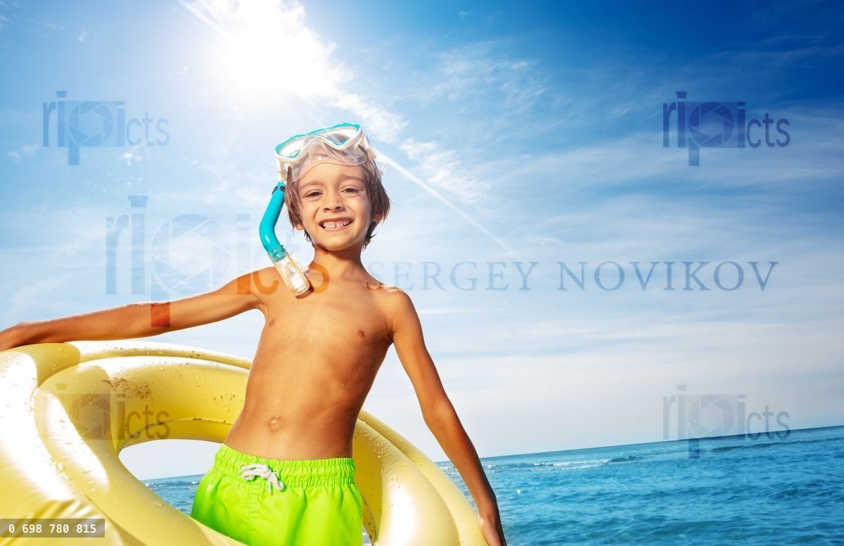 Caucasianboykidkidschildchildhoodchildrensmilesmilinghappyhappinessenjoyjoyfunplaytoylifestyleactivitysportsummertimesummersunsunnydayblueskywaterseaoceanbeachswimswimmingleisurevacationholidayairinflatableraftringtubeequipmentoutdoorsscubamasksnorkelsnorkelingdivedivingcamp