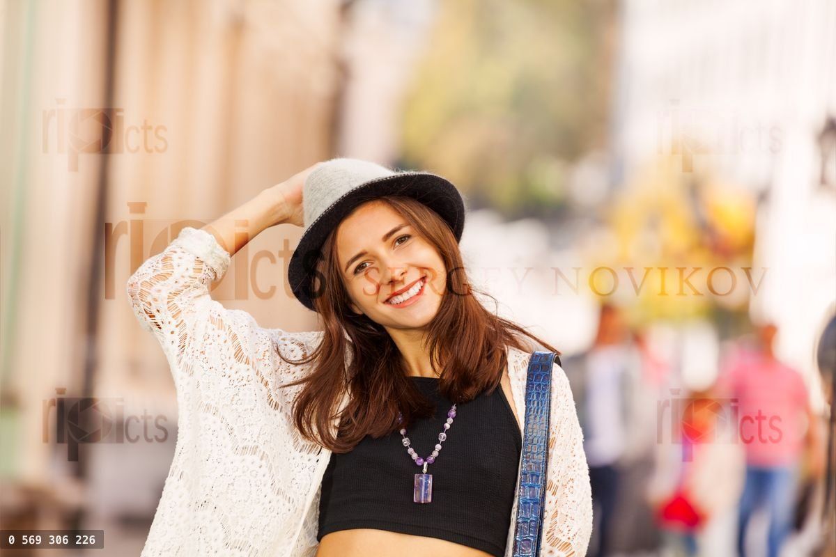 Portrait of girl with hat on the street during