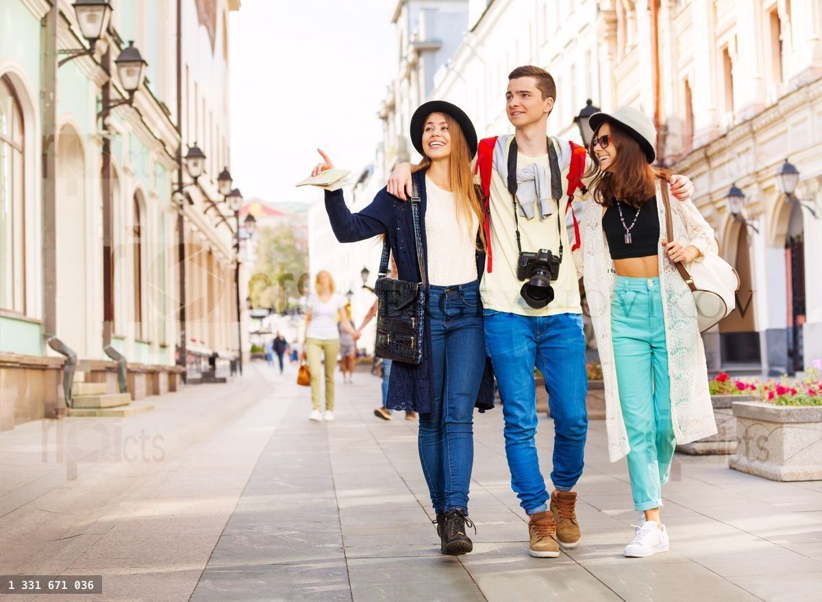 EuropeEuropeanteenyounggirlmanguywomanholidayvacationsummerurbanstreettouristfemalemalefriendstravelcityhappyCaucasiansmilelifestyleretrotourismoutdoorphotocameraphotographerdaysunnycheerfuladulttogether3threetrippositivetouristicsightseeingholdhatlookrucksackteamrowhugarmswalkwalking
